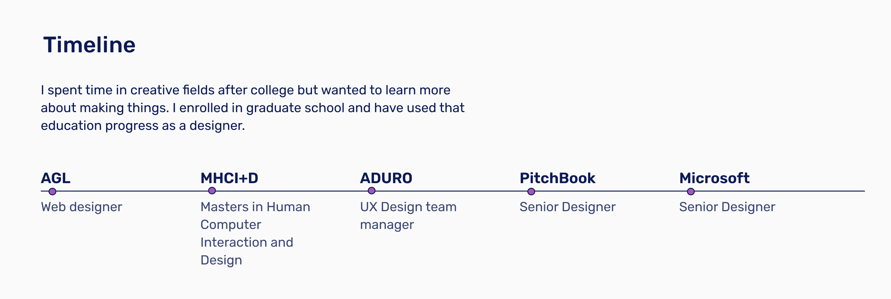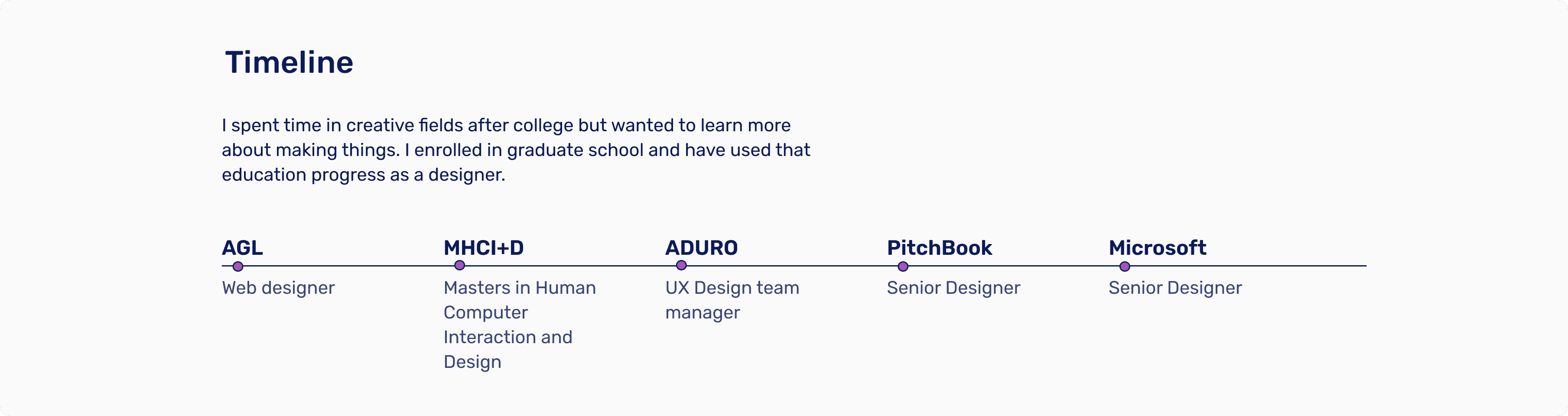 I’m from Chicago and have a BA in Psychology and Spanish from DePauw University, and a masters in Human Computer Interaction + Design from the University of Washington. I love the outdoors, concerts, photography and using side projects to learn new things.