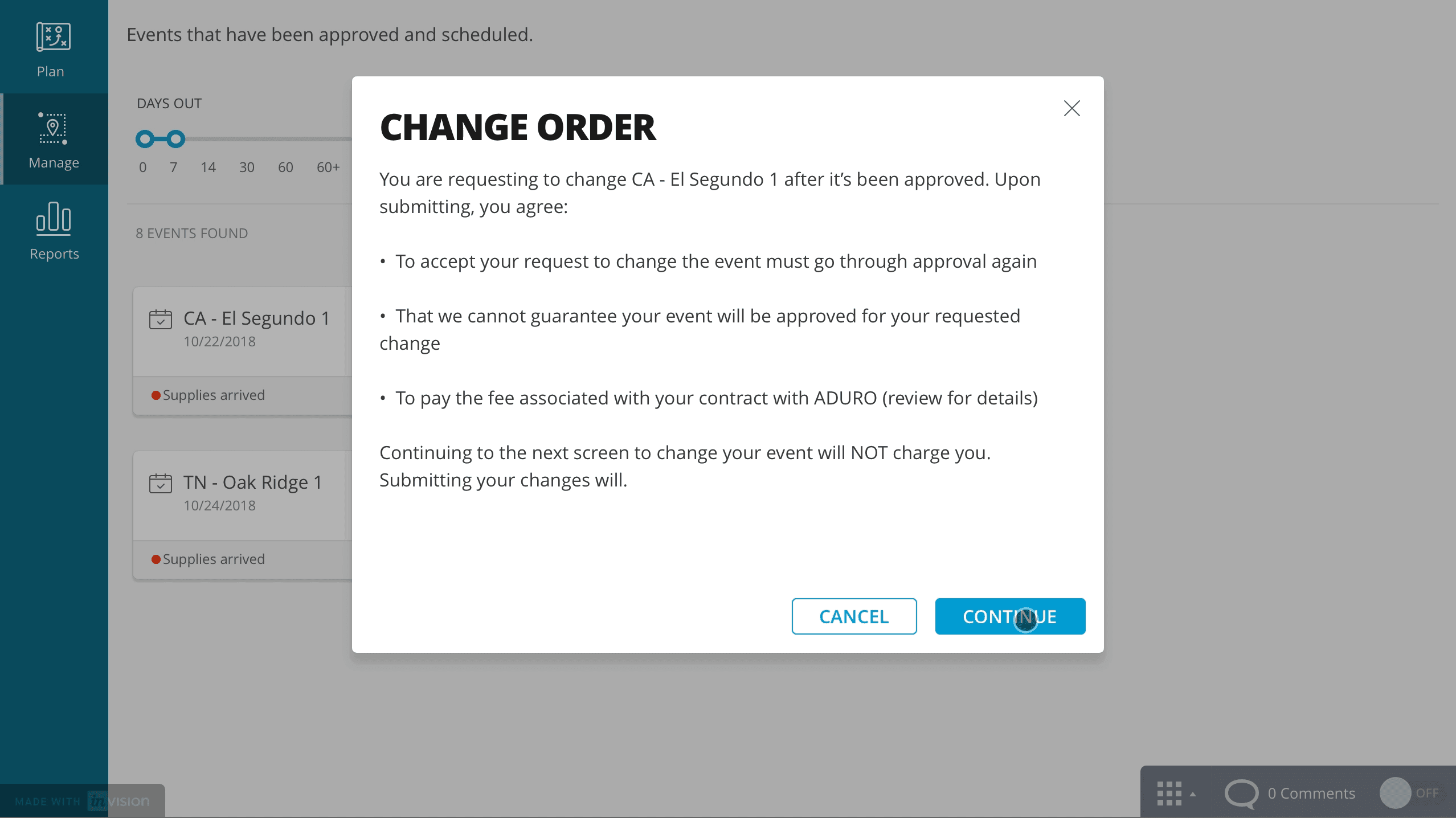 Manage and approve events